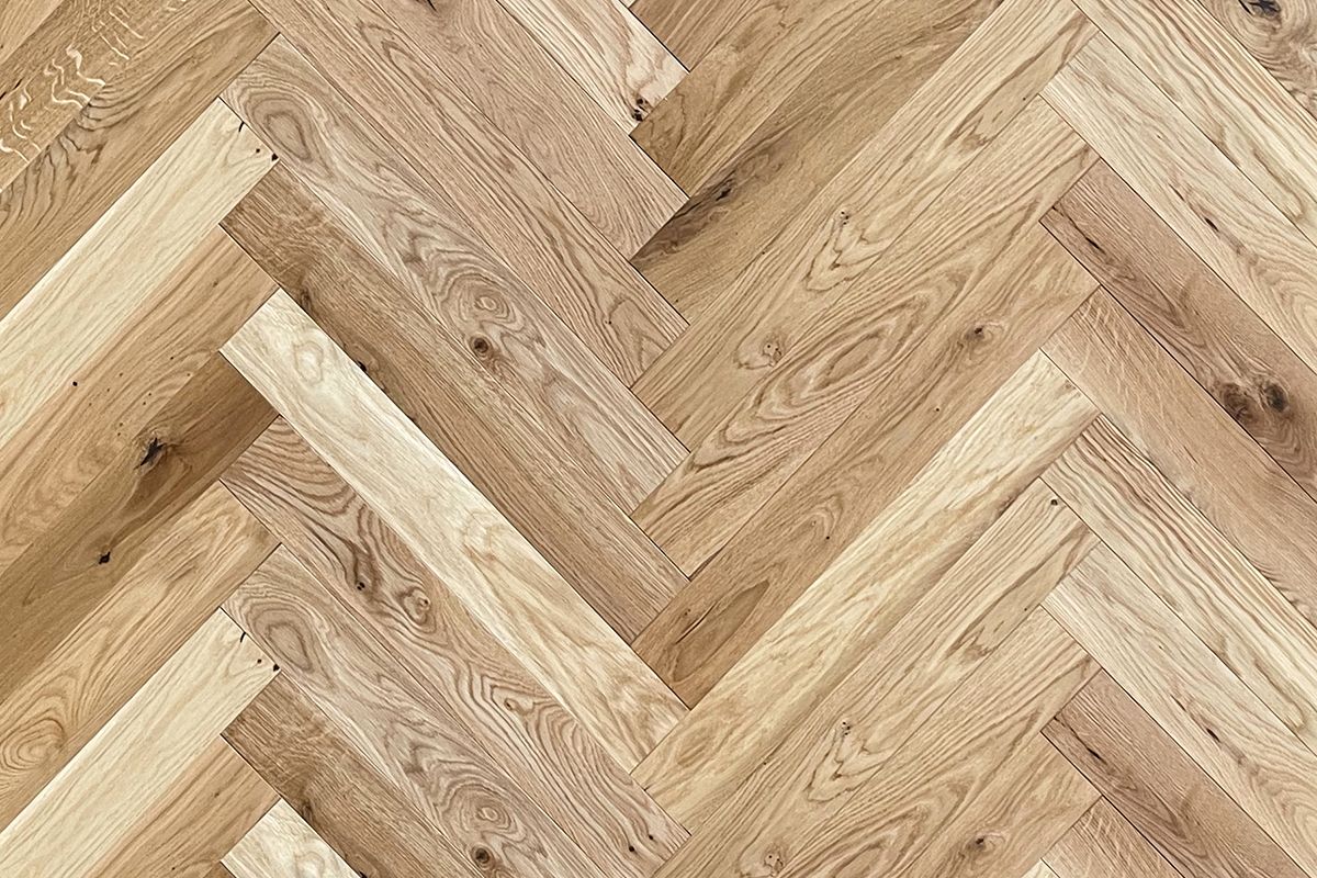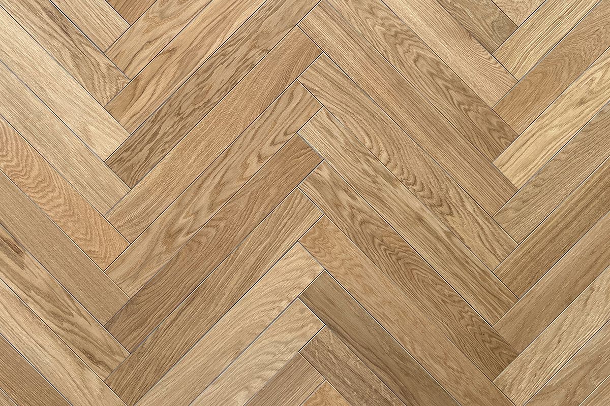 Oiled parquet typically has a darker tone compared to lacquered finishes and is distinguished by a more natural, textured feel to the touch.